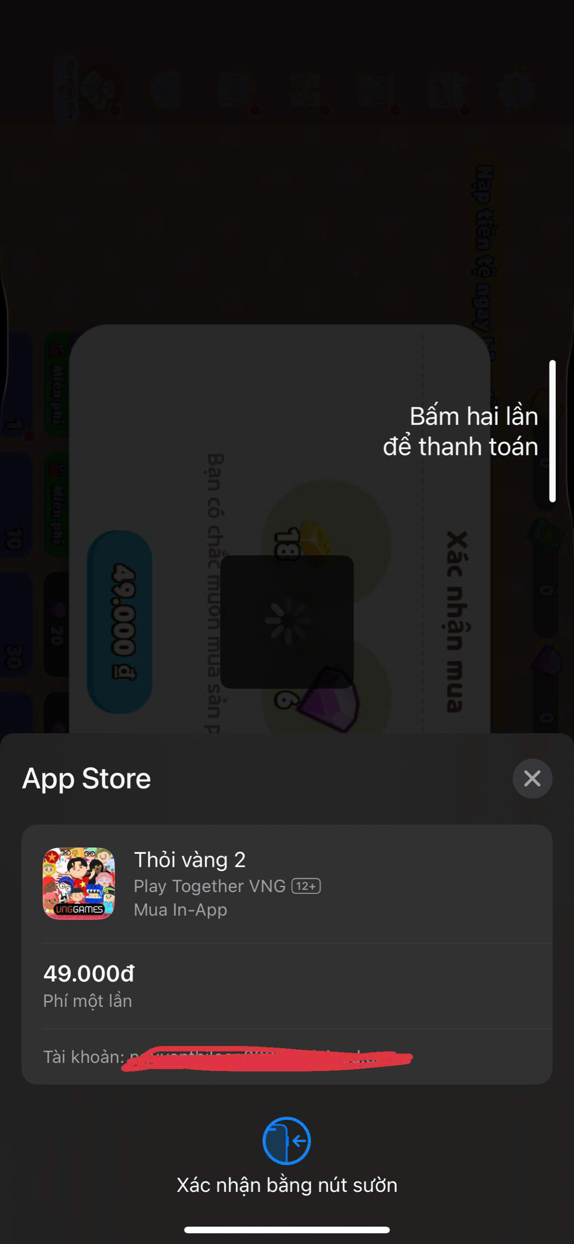 Xác nhận thanh toán qua Google Play hoặc App Store. Tùy thuộc vào thiết lập của bạn, có thể cần nhập mật khẩu hoặc sử dụng vân tay, Face ID để xác nhận. Sau khi thanh toán thành công, Kim cương/Tiền sao sẽ được cộng ngay lập tức vào tài khoản của bạn.