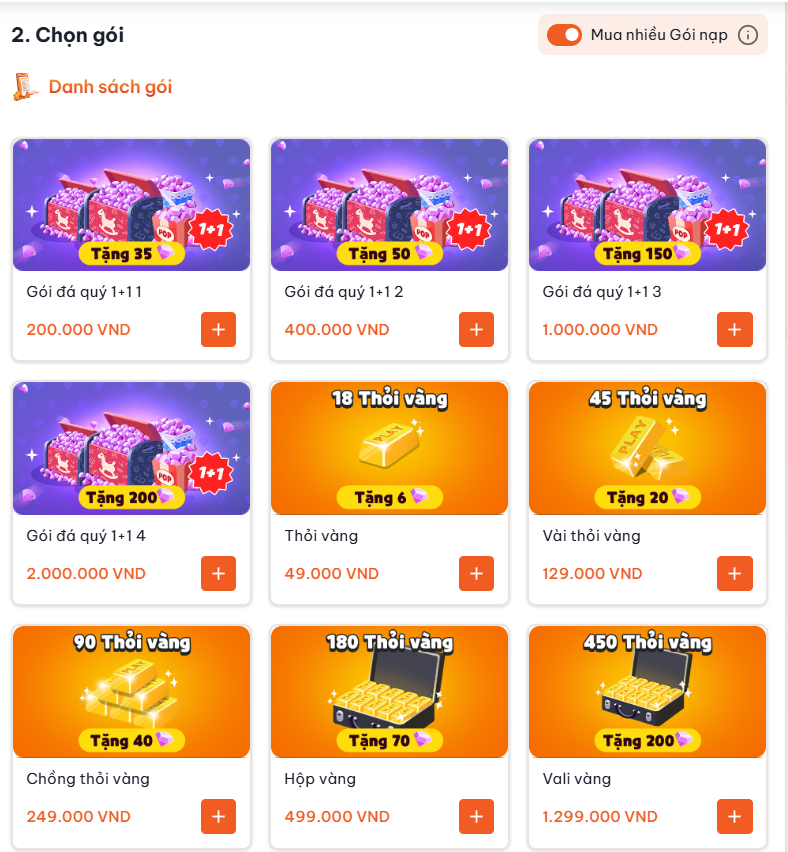 Bước 3: Chọn gói nạp và phương thức thanh toán